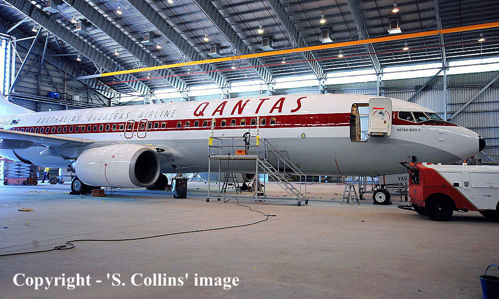 On This Day - November 15, 2015. The Qantas Airways Boeing 737-838 VH-VXQ was rolled-out at Townsville in the the airline's original 'Boeing 707' livery. This repaint was commissioned to celebrate the airline's 95th Anniversary. |