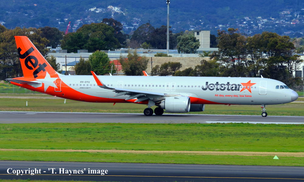 VH-OYU. Jetstar - in the revised livery at Adelaide West Beach Airport, April 06, 2025. (T. Haynes Copyright Image 0321-657.) |