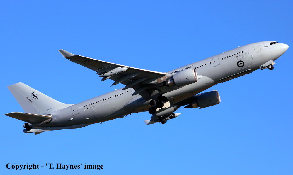 This aircraft was ordered new by Australian Government for the Royal Australian Air Force The contract to convert five Airbus A330 airframes for the R.A.A.F. was signed - December 20, 2004 Rolled off the production line at Toulouse as 'F-WWYI' This was the first Airbus A330MRTT (Multi Role Transport Tanker) to be built by Airbus Industries First flown as 'F-WWYI' in primer - March 30, 2006 Powered by International General Electric CF6-80E1A4 engines Rolled out at Toulouse as 'F-WWYI' in the standard R.A.A.F. low-viz livery - May 05, 2006 Delivered to CASA, Madrid, Spain for conversion to MRTT configuration - May 31, 2006 This conversion was undertaken by EADS Conversion & Modification Centre, Getafe, Spain Rolled into hangar for conversion - June 02, 2006 First post conversion flight flown as 'EC-330' - June 15, 2007 It appeared at the Paris Air Show in the standard R.A.A.F. low viz livery - June 17, 2007 It was observed at Toulouse fitted with the Advanced Refuelling Boom System (ARBS) - December 17, 2007 It appeared at the Paris Air Show in the standard R.A A.F. low viz livery - October 26, 2008 Refuelling trials undertaken from Getafe, Serville with a French Air Force Boeing E-3A - January 2010 The aircraft was displayed at the Airbus Military Family Day at Seville - November 14, 2010 The refuelling boom was damaged during in-flight trials with a Portugese Air Force F-16 - January 20, 2011 Accepted by the R.A.A.F. at Madrid as 'EC-330' - November 29, 2011 The aircraft remained in Spain to undergo further testing of the refuelling equipment It was expected to be delivered to 33 Squadron at Amberley, Queensland - 2012 It was observed operating at Getafe as CASA301A carrying code 'MRTT-01' - November 28, 2013 Ferried Getafe - Paris (Orly) for repainting prior to redelivery to R.A.A.F. - October 03, 2014 Entered onto the Australian Military Aircraft Register as A39-001 It arrived at R.A.A.F. Base Amberley, Queensland on completion of the delivery flight from France - February 24, 2015 Issued to No. 33Squadron, 86 Wing based at Amberley, Queensland Engaged in refuelling trials with U.S.A.F. F-35A at Edwards AFB - September 23 to October 26, 2015 A total of 479 dry and 24 wet connections performed using the ARBS Current with the Royal Australian Air Force |