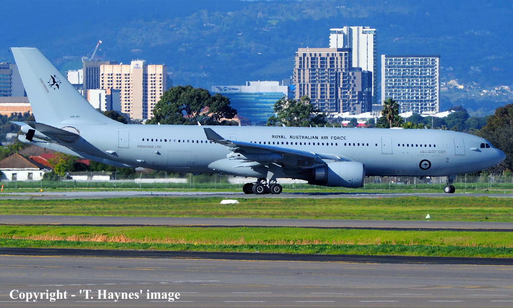 A39-005. Royal Australian Air Force - in the low viz grey livery at Adelaide West Beach Airport, August 14, 2022. (T. Haynes Copyright Image 0330-405.) |