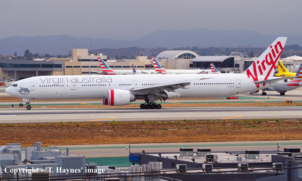 VH-VPH. Virgin Australia - 'St Kilda Beach' in the standard livery at Los Angeles Airport, May 08, 2019. (T. Haynes Copyright Image 4675-055.) |