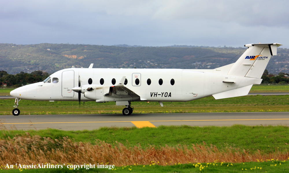 This aircraft was observed on the production line at the Beech Aircraft Factory, Wichita, Kansas - ? Entered onto the United States Aircraft Register as - ? Cancelled from the United States Aircraft Register - ? Entered onto the South African Aircraft Register as ZS-SSX - ? Departed Johannesburg (Lanseria) on the ferry flight to Australia - ? It arrived Perth (Jandakot) on completion of the ferry flight - February 26, 2011 Cancelled from the South African Aircraft Register - ? Entered onto the Australian Aircraft Register as VH-YOA - April 01, 2011 Registered to Awesome Aviation Leased to Air South as the registered operator Ferried Perth - Adelaide (West Beach) on delivery to Air South - April 08, 2011 Current with Air South |