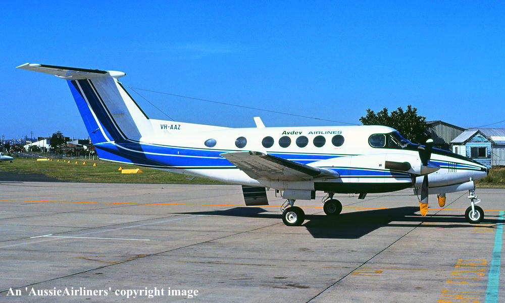 This aircraft was built by Beechcraft at Wichita, Kansas - 1977 First flown as N23915 - ? Powered by Pratt & Whitney Canada PT6A-41 engines It arrived at Sydney (Bankstown) on completion of its ferry flight from the United States - April 30, 1977 Entered onto the Australian Aircraft Register as VH-AAZ - September 19, 1977 Registered to Advance Airlines, Sydney Accepted by Advance Airlines at Sydney (Bankstown) - October 09, 1977 Sold to AVDEV (Aviation Developments) - 1981 Leased to Norfolk Island Airlines as the registered operator - April 22, 1984 The aircraft carried dual titles: 'Norfolk Island Airlines' and 'Lord Howe Island Airlines' The 'Lord Howe Island Airlines' titles were later removed from the aircraft It operated scheduled passenger services from Sydney (Kingsford Smith) and Newcastle to Lord Howe Island It operated scheduled passenger services from Brisbane to Norfolk Island via Coolangatta and Lord Howe Island It was damaged beyond repair at Bundaberg, Queensland - 1991 Cancelled from the Australian Aircraft Register - May 18, 1995 |