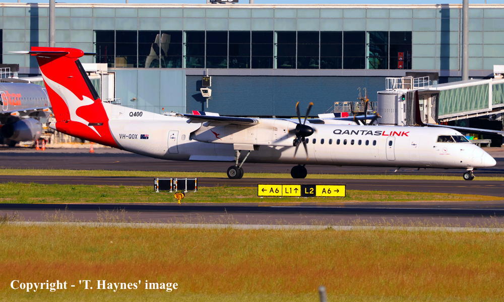 VH-QOX. QantasLink - 'Cradle Coast' in the 'Silver Roo' livery at Sydney Kingsford Smith Airport, September 19, 2022. (T. Haynes Copyright Image 2924-141.) |