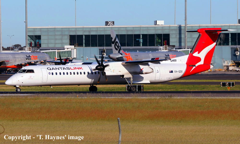 VH-QOX. Bombardier DHC-8-402Q. c/n 4287. Was also registered as: C-FZGC. |