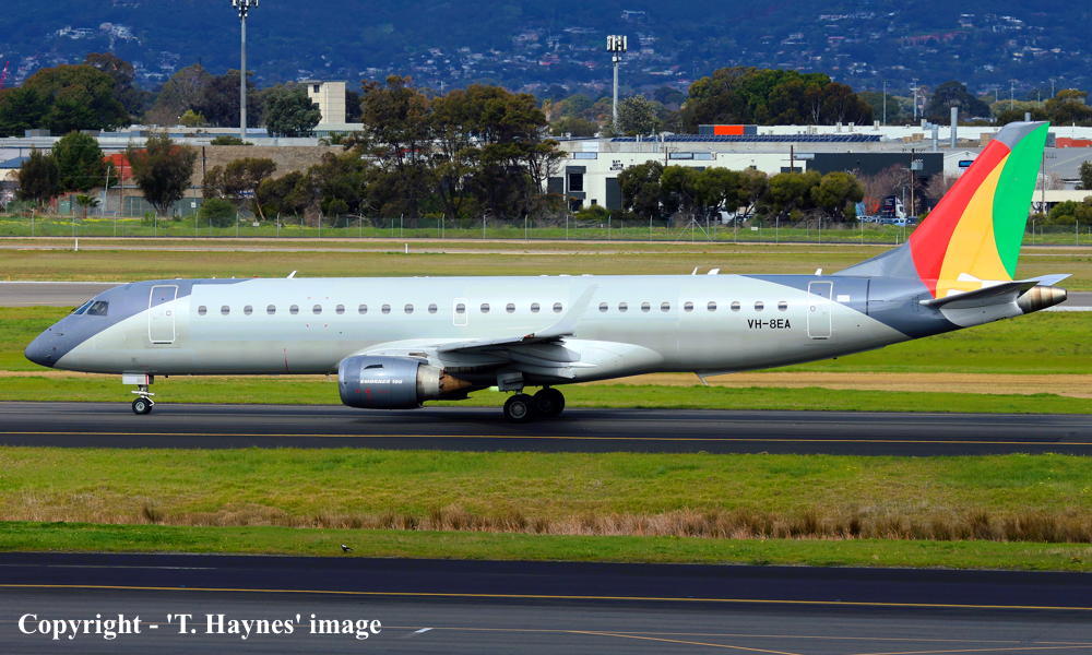 VH-8EA. Embraer ERJ-190-100LR. c/n 1900488. Was also registered as: PT-RPN; B-3149; M-AMBO; CP-3145; VP-CDY. |