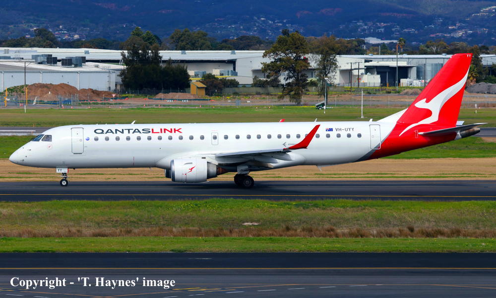 This aircraft was ordered by Copa Airlines, Panama - ? Rolled off the production line at Sao Jose dos Campos, Brazil - October 2008 First flown as 'PT-SGV' - October 2008 Powered by General Electric GE34-10E6 engines Entered onto the Panama Aircraft Register as HP-1568CMP - October 13, 2008 Registered to Copa Airlines, Panama Accepted to Copa Airlines at Sao Jose dos Campos - October 2008 The aircraft was withdrawn from service at San Juan - March 17, 2020 Ferried Panama City - Sao Jose dos Campos - November 2020 Cancelled from the Panama Aircraft Register - November 20, 2020 Entered onto the United States Aircraft Register as N932QQ - November 20, 2020 Registered to TVPX Aircraft Solutions Inc Trustee, Utah Departed Costa Rica (Sao Jose dos Campos) on the delivery flight to Australia as SXI201 - January 11, 2021 It arrived at Brisbane (15:50 local) on completion of the delivery flight from Costa Rica - January 14, 2021 Sold to Alliance Airlines, Australia - January 14, 2021 Cancelled from the United States Aircraft Register - January 14, 2021 Entered onto the Australian Aircraft Register as VH-UYY - January 18, 2021 Registered to Bravo Airlines Pty Ltd, Brisbane Leased to Alliance Airlines Pty Ltd, Brisbane as the registered operator Operated its first revenue service Brisbane - ? - ? It was repainted into the QantasLink 'Silver Roo' livery - ? Current with QantasLink |