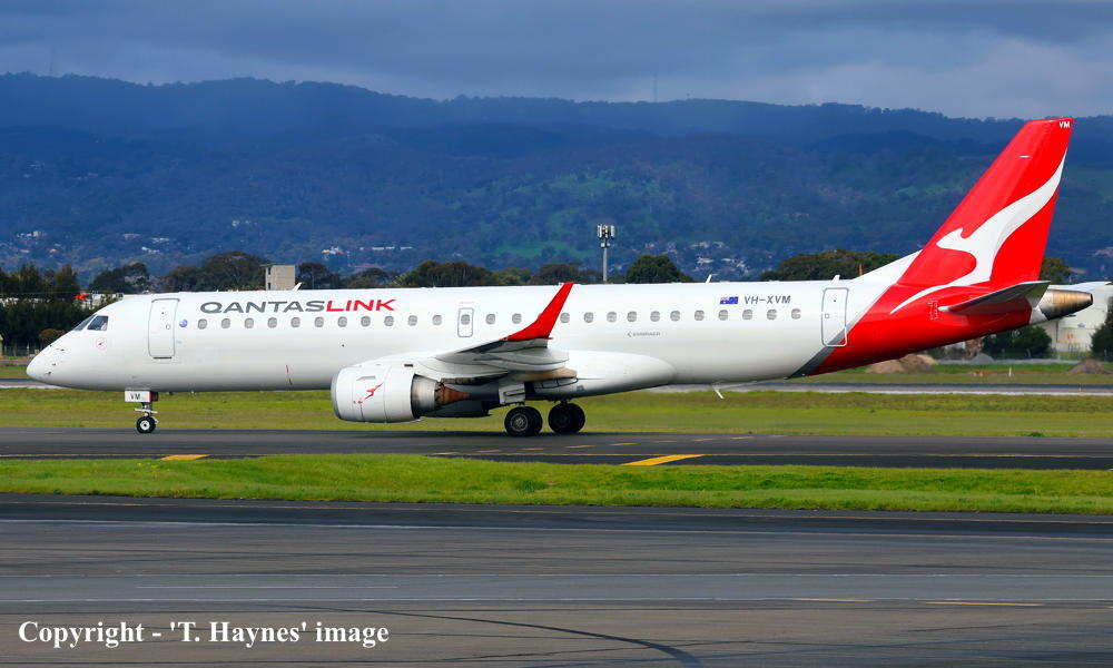 VH-XVM. QantasLink - in the 'Silver Roo' livery at Adelaide West Beach Airport, May 21, 2023. (T. Haynes Copyright Image 0190-423.) |