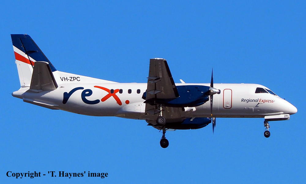 This aircraft was built by Saab Aircraft AB, Linkoping, Sweden - 1996 First flown with the test registration 'SE-B04' - October 02, 1996 Powered by General Electric CT7-9B engines of 1870 hp Entered onto the United States Aircraft Register as N404XJ - ? Leased to Mesaba Airlines as the registered operator - October 25, 1996 Leased to PenAir as the registered operator - March 11, 2010 Withdrawn from service by PenAir - December ?, 2018 It was prepared for lease to REX Regional Express - May 2019 Cancelled from the United States Aircraft Register - ? Entered onto the Australian Aircraft Register as VH-ZPC - May 03, 2019 Registered to Rex Investment Holdings Pty Ltd, Sydney Leased to Regional Express Pty Ltd, Sydney as the registered operator The aircraft was configured to seat 36 passengers Operated its first REX revenue service - ? Withdrawn from service and stored at Wagga Wagga - January 16, 2025 Current with Regional Express Airlines |