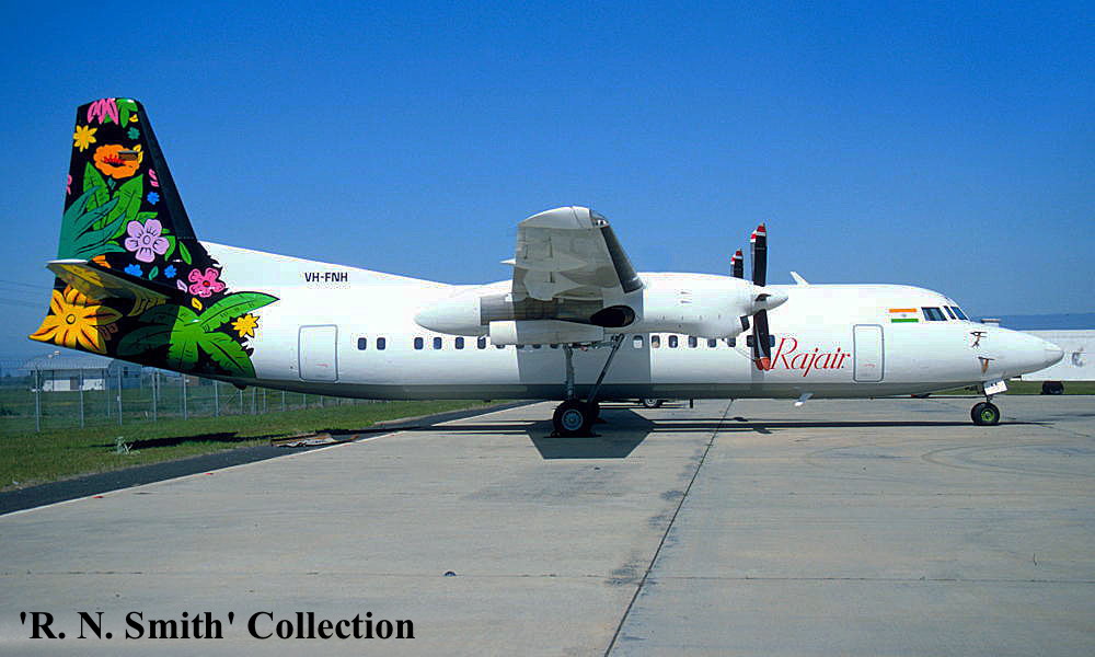 The Ansett Airlines Fokker F27-050 VH-FNH was rolled-out at Melbourne (Tullamarine) in the 'Rajair' livery, in preparation for its lease to the Indian based airline. Although the Indian registration 'VT-RAC' had been allocated, the lease did not proceed and the aircraft was returned to Ansett service.