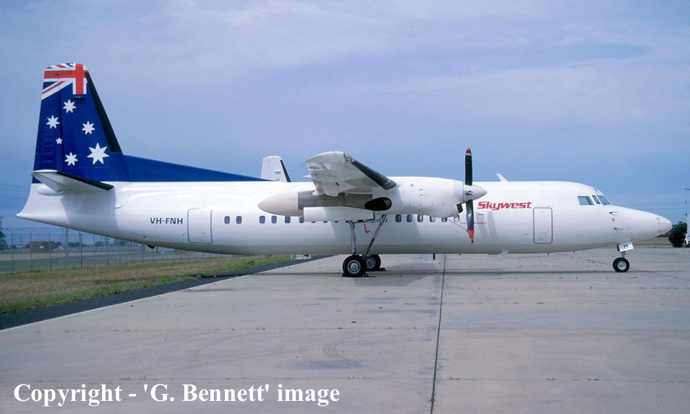 On This Day - October 05, 1994. The Ansett Airlines Fokker F27-050 VH-FNH was lease to the Ansett subsidiary airline Skywest Airlines, in Western Australia. |