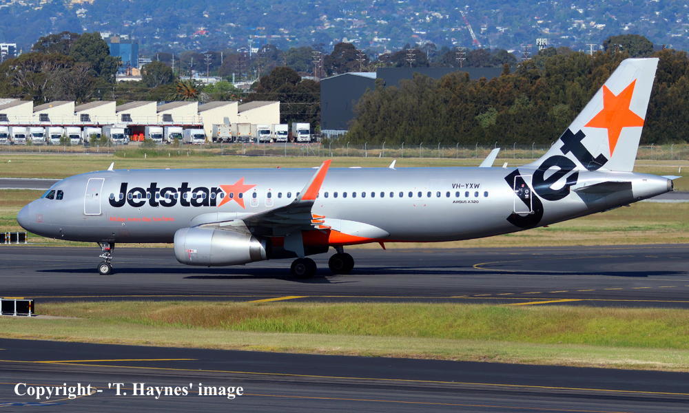 VH-YXW. Jetstar - in the standard livery at Adelaide West Beach Airport, March 09, 2022. (T. Haynes Copyright Image 0321-252.) |