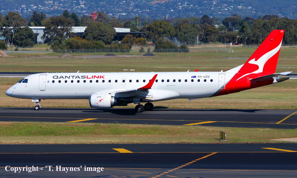 VH-UZQ. QantasLink - in the 'Silver Roo' livery at Adelaide West Beach Airport, November 25, 2022. (T. Haynes Copyright Image 0190-308.) |