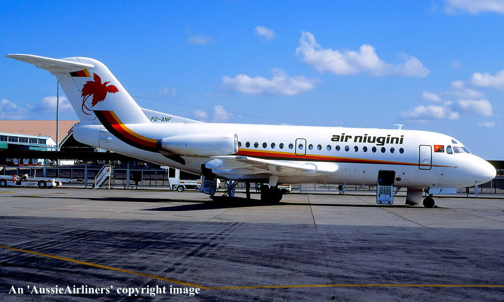 VH-XNG. Fokker F28-1035 Fellowship. c/n 11038. Was also registered as: N286FH; PH-EXM; CF-TAY; C-FTAY; P2-ANF. |