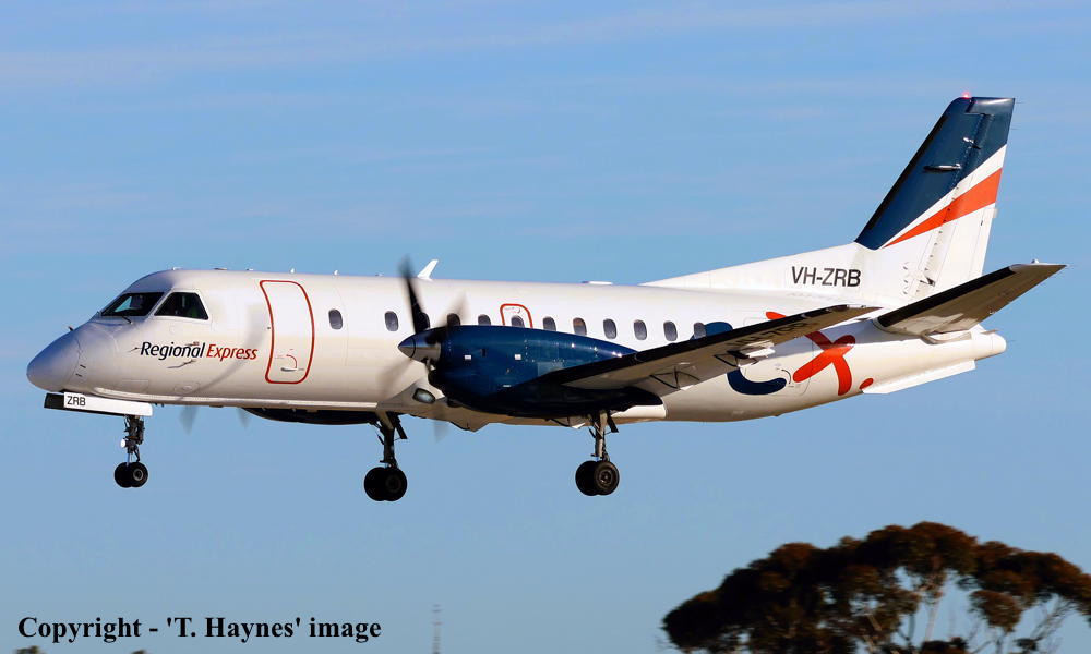 This aircraft was built by Saab Aircraft AB, Linkoping, Sweden - 1996 First flown with the test registration 'SE-C89' - March 19, 1996 Entered onto the United States Aircraft Register as N389AE - ? Delivered to Simmons Airlines - June 04, 1996 Simmons Airlines merged with American Eagle Airlines - January 05, 1998 Returned to SAAB at the end of the lease - ? Entered onto the Australian Aircraft Register as VH-ZRB - March 06, 2008 Registered to REX Investment Holdings Pty Ltd, Sydney Operated its first revenue service - ? Registered to REX Investment Holdings Pty Ltd, Sydney - April 12, 2019 Leased to Regional Express Pty Ltd, Sydney as the registered operator Withdrawn from use and stored at Wagga Wagga - February 23, 2025 Returned to service - August 08, 2025 Current with Regional Express |