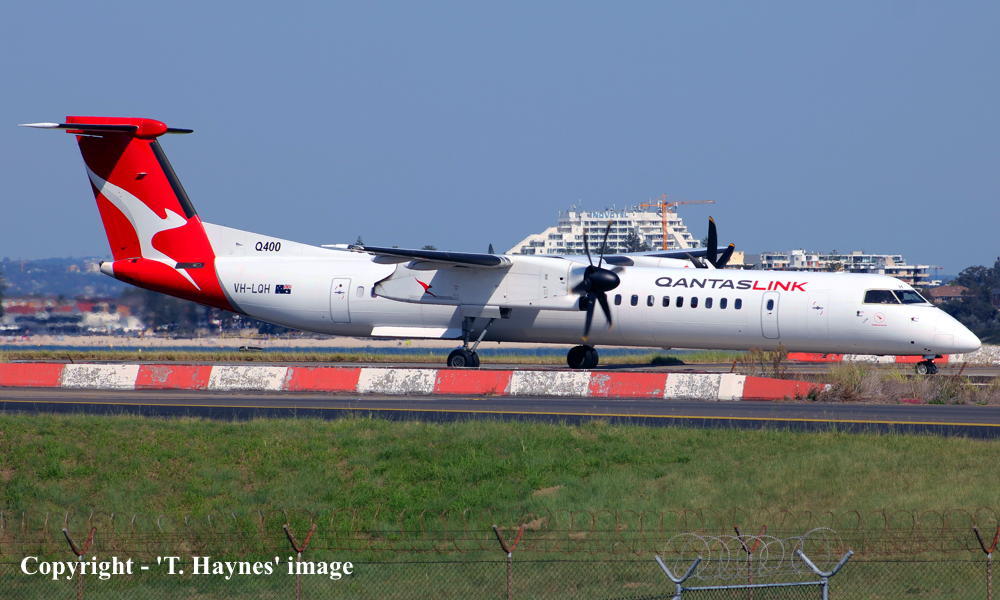This was the seventh of eight aircraft ordered new by Qantas Airways for operations by Qantas Link - July 21, 2010 Powered by Pratt & Whitney Canada PWC150A turboprop engines Entered onto the Canadian Aircraft Register as C-GSZD - November 21, 2012 Registered to Bombardier Incorporated, Downsview, Ontario, Canada It was observed at Downsview in the 'QantasLink' livery as ' C-GSZD' - December 2012 Accepted by Qantas Airways at Toronto (Downsview) - January 24, 2013 Departed Toronto (Downsview) on the delivery flight to Australiaas BBA01- January 26, 2013 It arrived at Cairns on completion of the delivery flight from Canada - January 30, 2013 Delivery route: Toronto - Winnipeg - Yellowknife - Fairbanks - Nome - Magadan - Tokyo - Saipan - Port Moresby - Cairns Cancelled from Canadian Aircraft Register - January 30, 2013 Entered onto the Australian Aircraft Register as VH-LQH - February 05, 2013 Registered to Qantas Airways Ltd, Mascot, Sydney Leased to Sunstate Airlines (Queensland) Pty Ltd as the registered operator Ferried Cairns - Brisbane - Sydney (Kingsford Smith) as QF715D - February 23, 2013 Operated its first revenue service Sydney (Kingsford Smith) - Canberra as QF1473 - February 25, 2013 The aircraft was unnamed when it entered service The aircraft was subsequently named 'Kingscote' Current with QantasLink |