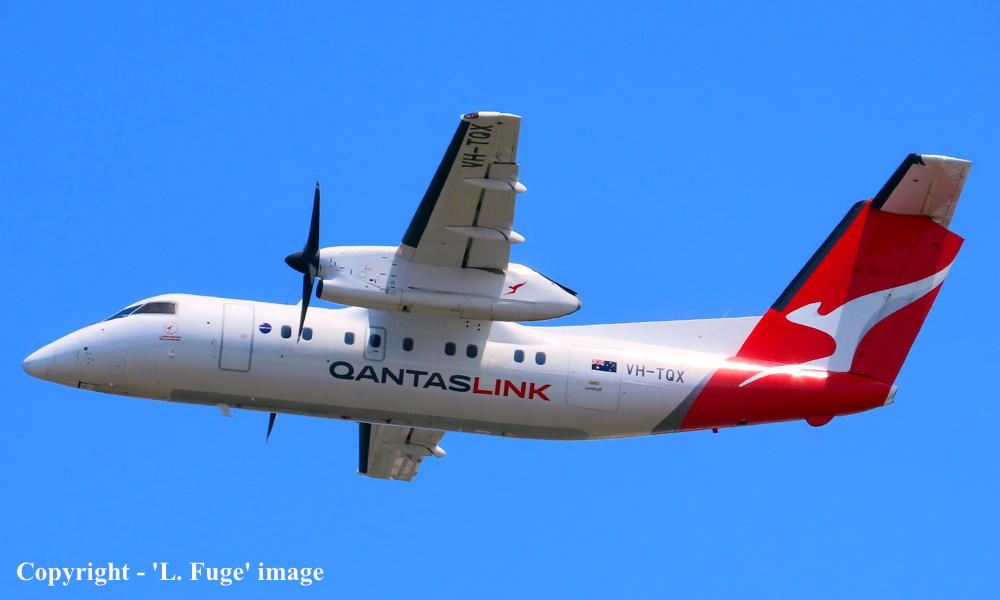 Entered onto the Canadian Aircraft Register as 'C-GHRI' - June 17, 1996 Registered to Bombardier Inc, Downsview, Ontario, Canada Construction of this aircraft was completed at the Downsview plant - November 26, 1996 First flown as 'C-GFRI' - December 1996 Powered by Pratt & Whitney Canada PWC123D turboprop engines It was configured to seat 36 passengers Cancelled from the Canadian Aircraft Register - January 24, 1997 The sale of this aircraft to Pelangi Air (Malaysia) did not proceed Entered onto the Canadian Aircraft Register as C-GHRI - January 30, 1997 Registered to Bombardier Inc, Downsview, Ontario, Canada It was observed at Rotterdam performing demonstration flights - February 02, 1997 It was observed at Calgary in the 'Tavaj' livery as C-GHRI - March 1, 1997 Leased to Tavaj Transportes Aereos Regulares - March 31, 1997 Cancelled from the Canadian Aircraft Register - April 07, 1997 Entered onto the Brazilian Aircraft Register as PT-TVB - April 07, 1997 Registered to Bombardier Inc, Downsview, Ontario, Canada Leased to Tavaj as the registered operator Returned to Bombardier Capital Inc at the end of the lease - December 14, 1999 Sold to CIBC Aviation Inc - December 14, 1999 Sold to FSBU First Security Bank of Utah, Salt Lake City - December 14, 1999 Cancelled from the Brazilian Aircraft Register - December 15, 1999 Entered onto the United States Aircraft Register as N439SD - December 15, 1999 Registered to FSBU First Security Bank of Utah It arrived at Toronto as 'N439SD' - March 13, 2000 Sold to Eastern Australia Airlines - March 13, 2000 Cancelled from the United States Aircraft Register - March 16, 2000 Entered onto the Australian Aircraft Register as VH-TQX - March 17, 2000 Registered to Eastern Australia Airlines Pty Ltd, Sydney Departed Toronto on the delivery flight to Australia - March 24, 2000 It arrived at Tamworth on completion of the delivery flight from Canada - March 29, 2000 Operated its first revenue service - ? Operated the inaugural Melbourne (Tullamarine) - Wollongong - Melbourne service as QF2740/2743 - June 06, 2005 Registered to Qantas Airways Ltd, Mascot, Sydney - February 18, 2011 Leased to Eastern Australia Airlines, Mascot, Sydney as the registered operator Operated the Brisbane - Townsville service as QF1010 - July 28, 2018 It was repainted at Townsville by Flying Colours into the 'Silver Roo' livery It was the first DHC-8 to acquire the new livery The aircraft was named 'Lord Howe Silvereye' It returned to service Townsville - Brisbane - Sydney (Kingsford Smith) - August 09, 2018 Current with QantasLink |
