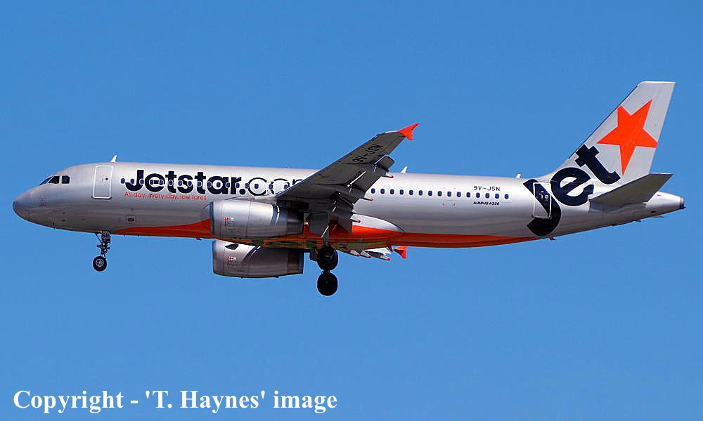 The Jetstar (Asia) Airbus A320-232 9V-JSN was ferried from Singapore (Changi) to Australia (Alice Springs) as Flight 3K901 in preparation for its lease to Jetstar (Australia) as VH-X3E.