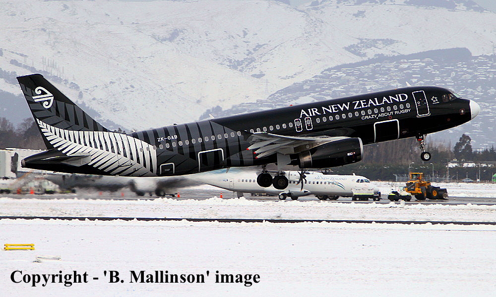 On This Day - February 07, 2011. The Air New Zealand Airbus A320-232 ZK-OAB entered service operating Flight NZ405 from Auckland to Wellington (New Zealand) in the special 'black' livery with 'Crazy About Rugby' titles. |