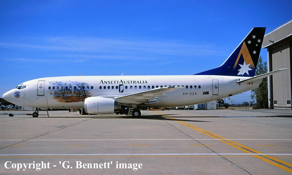 On This Day - July 09, 1996. Work commenced on Ansett Airlines Boeing 737-377 VH-CZA at Melbourne (Tullamarine) to remove the fuselage artwork depicting 'Waltzing Matilda'. This artwork, which was to celebrate the 100th anniversary of this iconic poem by Banjo Paterson, was removed in the 6 days that the aircraft was undergoing maintenance. |
