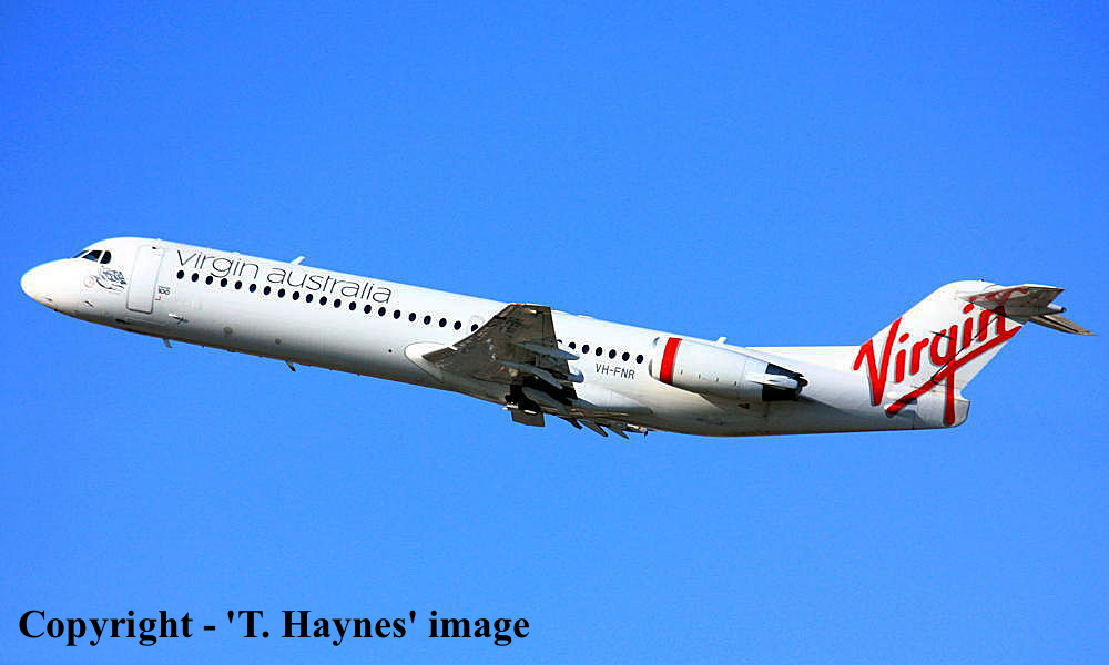 On This Day - September 14, 2013. The Virgin Australia Regional Airlines Fokker F28-0100 VH-FNR 'Lake Argyle' returned to service operating Flight VOZ2551 from Perth to Kununurra (Western Australia) following its repaint into the standard 'Virgin Australia' livery from its original 'Skywest Airlines' livery. |