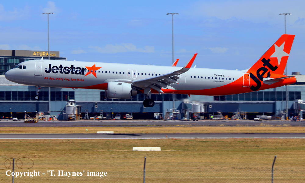 VH-OYX. Jetstar - in the revised livery at Adelaide West Beach Airport, January 04, 2026. (T. Haynes Copyright Image 0321-720.) |