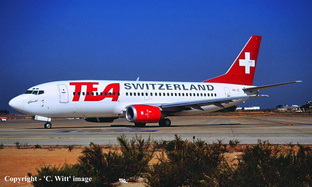 HB-IIC. TEA Switzerland- in the standard livery at an unknown airport, July 1994. (C. Witt Copyright Image 4623-167.) |