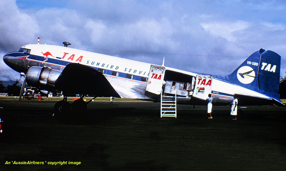 VH-SBD. TAA Sunbird Services - 'Madang' in the standard livery at Lae Airport, July 1966. (G. Bennett Collection Copyright Image 0250-990.) |