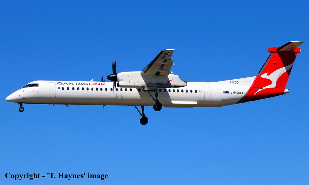 VH-QOU. Bombardier DHC-8-402Q. c/n 4275. Was also registered as: C-FYGQ. |