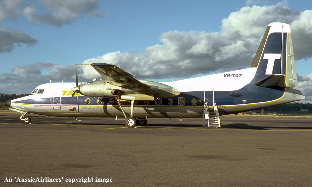 VH-TQT. Fokker F.27-6187 Friendship. c/n 10458. Was also registered as: PK-TSL; PK-YYC. |