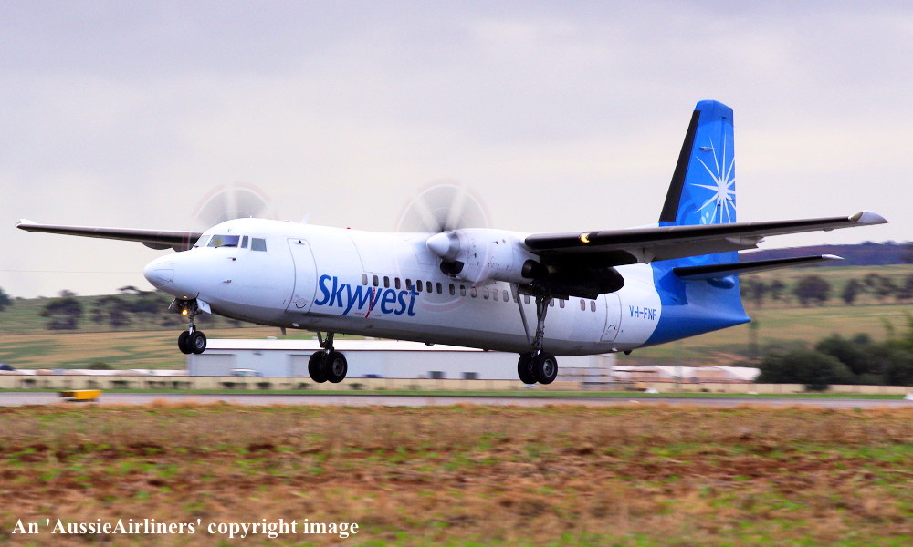 VH-FNF. Skywest - in the standard livery at Perth Airport, August 30, 2012. (M. Lynam Copyright Image 1997-187.) |